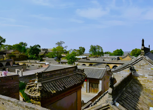 平遙古城的建築風格獨特,城牆巍峨聳立,將古城緊緊環繞。站在城牆上,撫摸著古老的磚石,彷彿能聽見歷史的迴響,看到曾經的金戈鐵馬、商賈雲集。城內街道由四大街、八小街、七十二條蚰蜒巷構成八卦圖案。