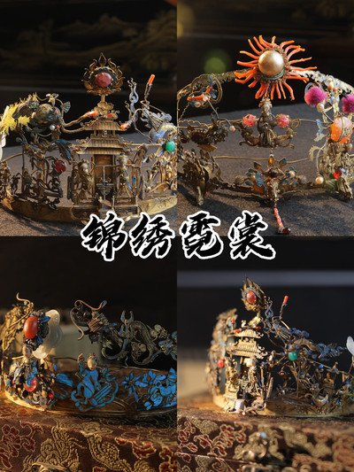 店內掛滿了各式各樣的古裝,最具特色的當屬清代古董衣;這些古董衣採用打籽、灑線、蘇繡、三藍繡等傳統工藝製作而成,圖案精美,色彩鮮豔。穿上古董衣,搭配上點翠首飾,瞬間穿越回了古代,成為晉商大院裡的千金小姐。
