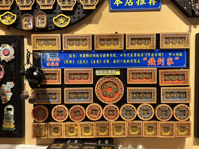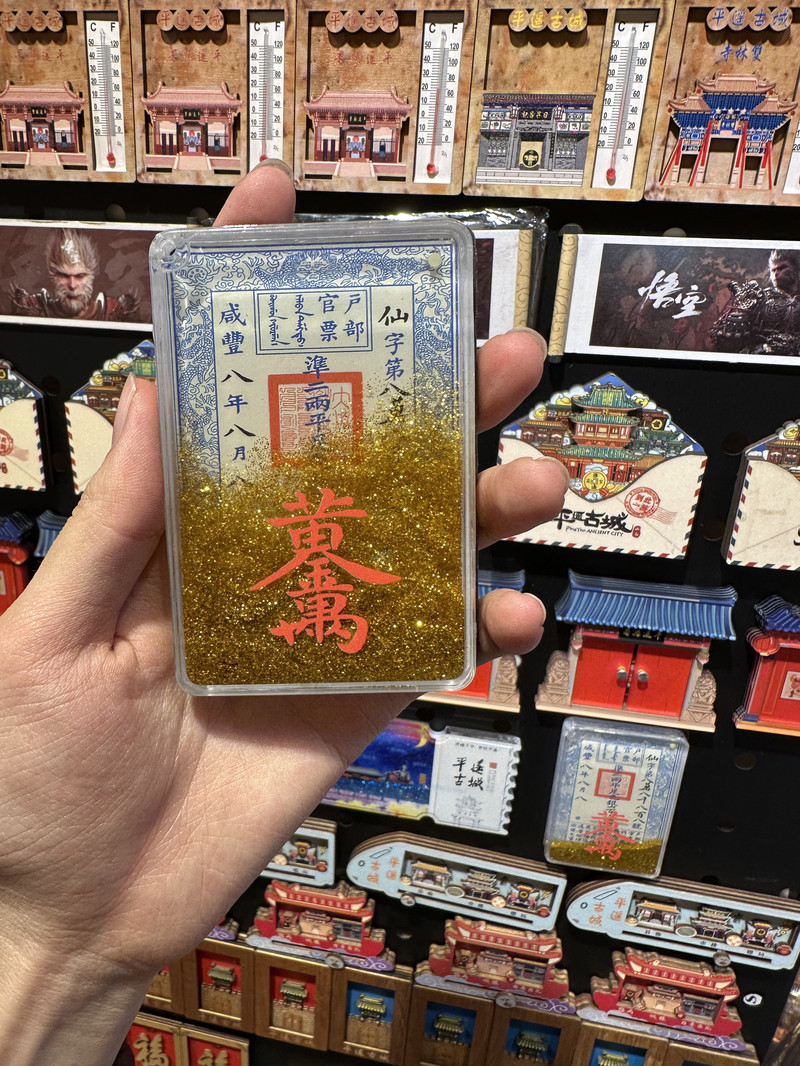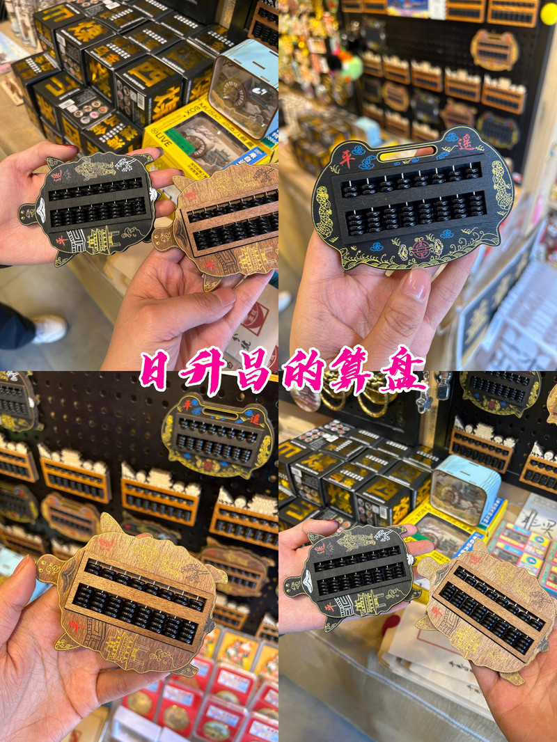 十分有趣的是,日昇昌票號的算盤也成了冰箱貼,算珠居然還能滑動呢!不經意間,有個小哥哥開玩笑的說:“買算盤可以沾沾平遙的財運哦!”我聞言不假思索果斷入手,畢竟誰不想家裡冰箱貼著“匯通天下”的富貴氣呢?