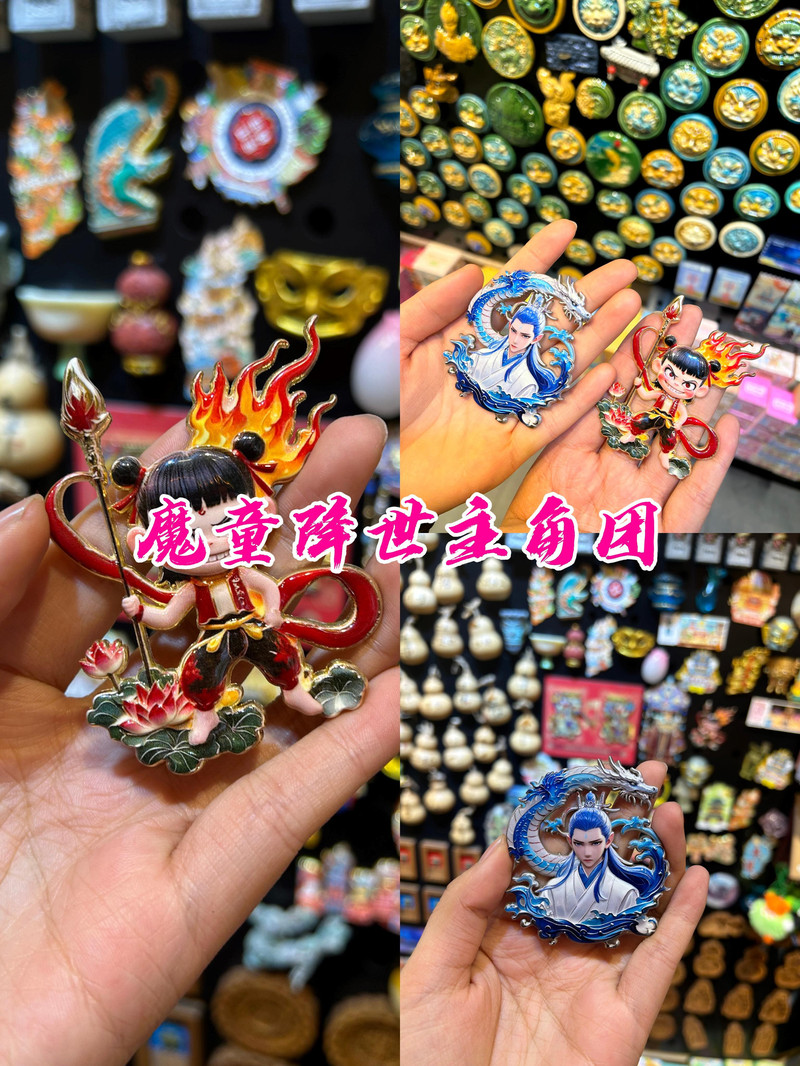 萬萬沒想到,就連唯一的女龍王敖閏,以及敖光、申公豹、太乙真人等角色,都被製作成了精美的冰箱貼。這種別出心裁的設計,既保留了哪吒電影的角色的精髓,又融入了平遙古城濃郁 文化底蘊。難怪有遊客調侃:“這哪是哪吒,分明是晉商文化代言人!”