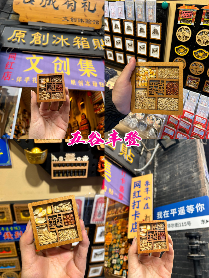 再看看獨特的“五穀豐登”板塊冰箱貼,把晉中的沃土豐饒濃縮成了方寸藝術。金燦燦的麥穗貼,每一粒麥子都用浮雕工藝凸起,彷彿能聞到新麥的焦香。