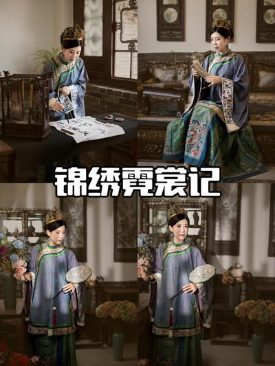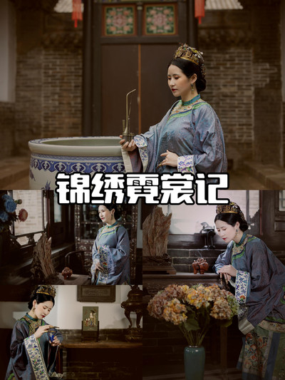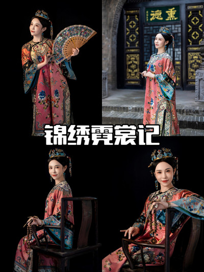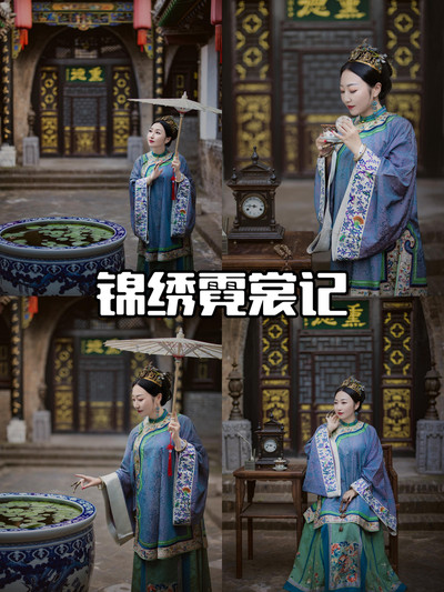 鎮店之寶!清代古董衣美到窒息!真絲襖裙上的打籽繡牡丹立體到能摸到花瓣,腰封一勒直接A4腰!點翠頭面沉得脖子都要斷啦,但戴上瞬間貴氣值爆表,攝影師小姐姐說這套是道光年間茶商夫人陪嫁的,摸翠羽時手都在抖!