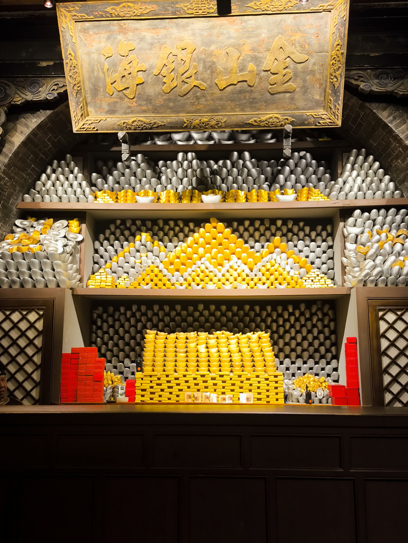協同慶錢莊最吸引人的地方莫過於其神秘的地下金庫 。地下金庫位於五院下方 ,通過一條狹窄的通道進入 ,裡面空間寬敞,由多個窯洞組成 ,當年這裡儲存著數量眾多的黃金白銀。如今,地下金庫雖然已不再存放金銀,但依然保留著當年的佈局和設施 ,還擺放了一些仿製的金銀財寶,讓遊客們可以一窺當年的財富盛況 。據說,地下金庫中還有一根樟木雕刻的神龍寶柱 ,是明太祖朱元璋時期的文物 ,也是平遙的鎮城之寶 ,很多遊客都會前來摸摸這根寶柱,沾沾財氣。