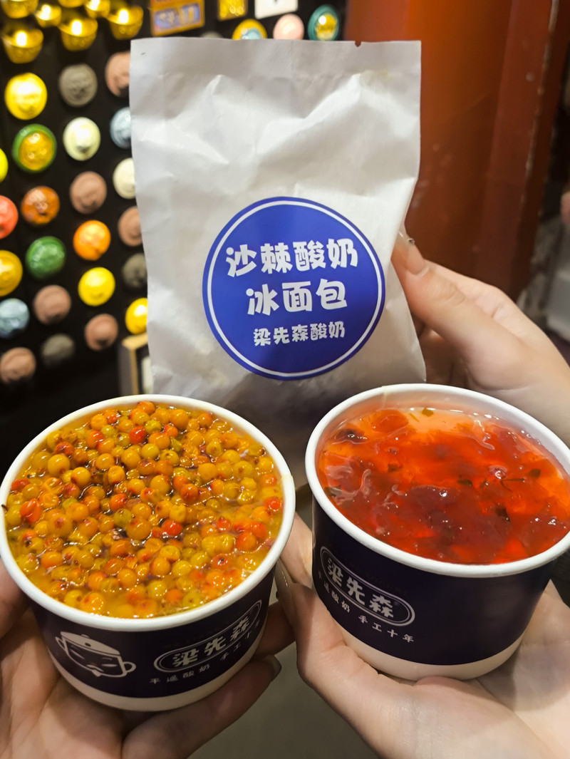 位於平遙古城南大街92號,是古城內的一家網紅小店,店內精緻又溫馨,酸奶和冰箱貼都是老闆自製的。他家的沙棘酸奶一定要嚐嚐,醇香濃厚的手工酸奶上鋪滿了酸酸甜甜的沙棘果,喝的時候要攪拌均勻~老陳醋酸奶是山西特色,但是不喜歡吃醋的朋友不一定喝的慣~還有沙棘酸奶冰麵包,有點甜但是不會膩,有點涼但是不會冰,可以吃到很多沙棘果,非常好吃的一款麵包