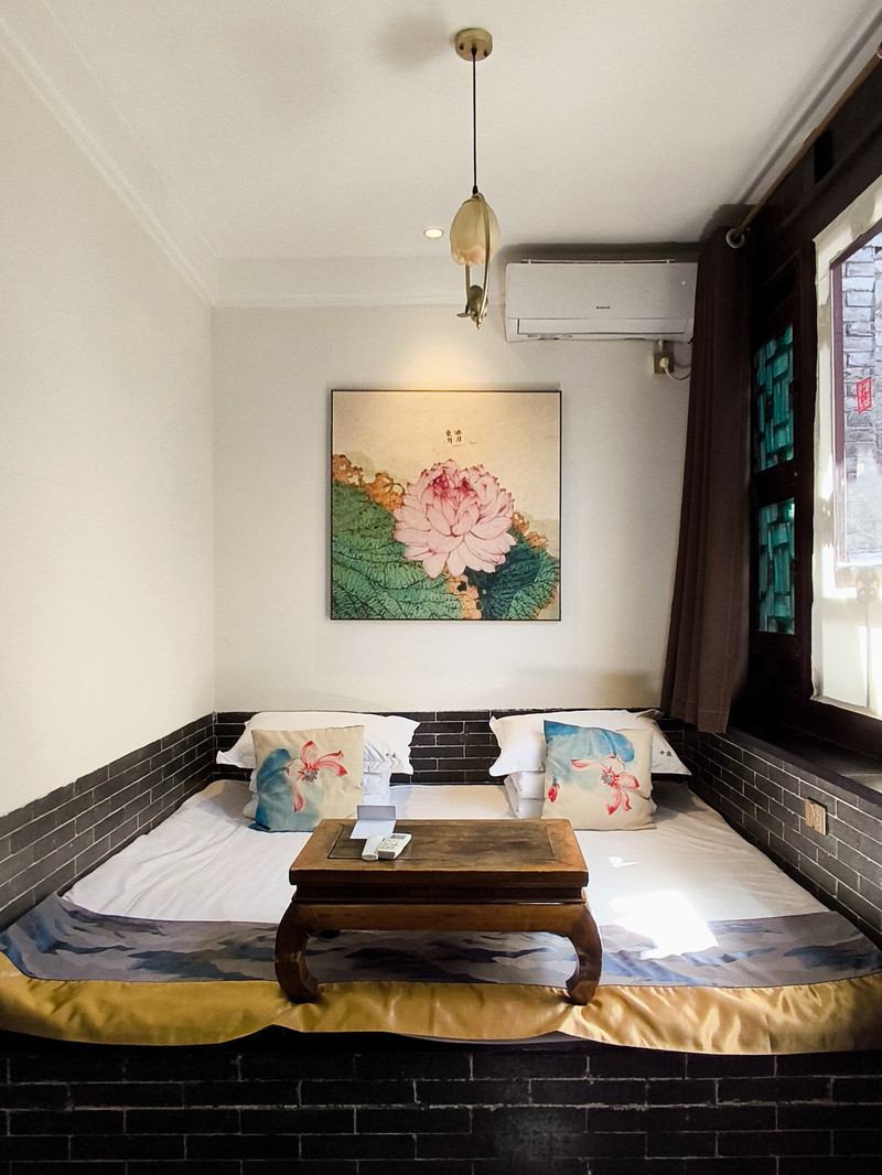 (3)印跡慢生活民宿:隱藏在西湖景街25號的小巷子裡 ,被綠意環繞,十分愜意 。民宿有著明清古建築的裝飾風格 ,灰牆青磚,木窗雕古樸典雅。土炕房的住宿體驗感很棒 ,床褥舒適,房間內的小擺件和家居設計風格別具一格,能看出老闆的用心。雖然距離主街稍遠,但勝在安靜,適合喜歡安靜的遊客,淡季價格不過百,性價比很高 。
