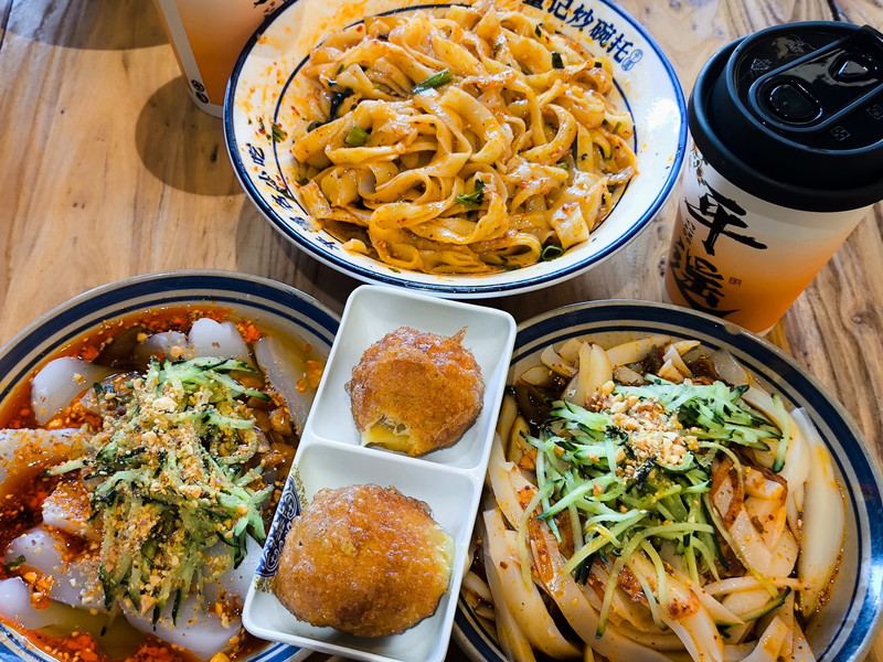 位於平遙古城衙門街41號,這家店在當地非常有名,炒碗託的種類豐富,有素炒、牛肉炒、火腿炒等多種口味,配料十足,味道超讚!碗托口感勁道,吃起來Q滑爽彈(平遙必打卡小吃,他家炒碗托種類最豐富,還可以自己選擇喜歡的食材和碗托搭配起來炒制),除了碗托,還有很多平遙特色小吃,桃花面、泡泡油糕(外殼金黃酥脆,裡面是香甜綿密的紅豆餡)、刀削麵、涼拌碗托、油茶(口感濃郁,可以搭配炒碗託一起吃)