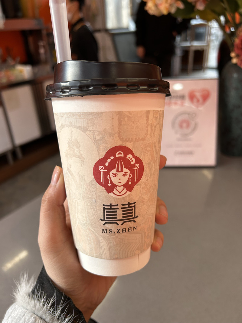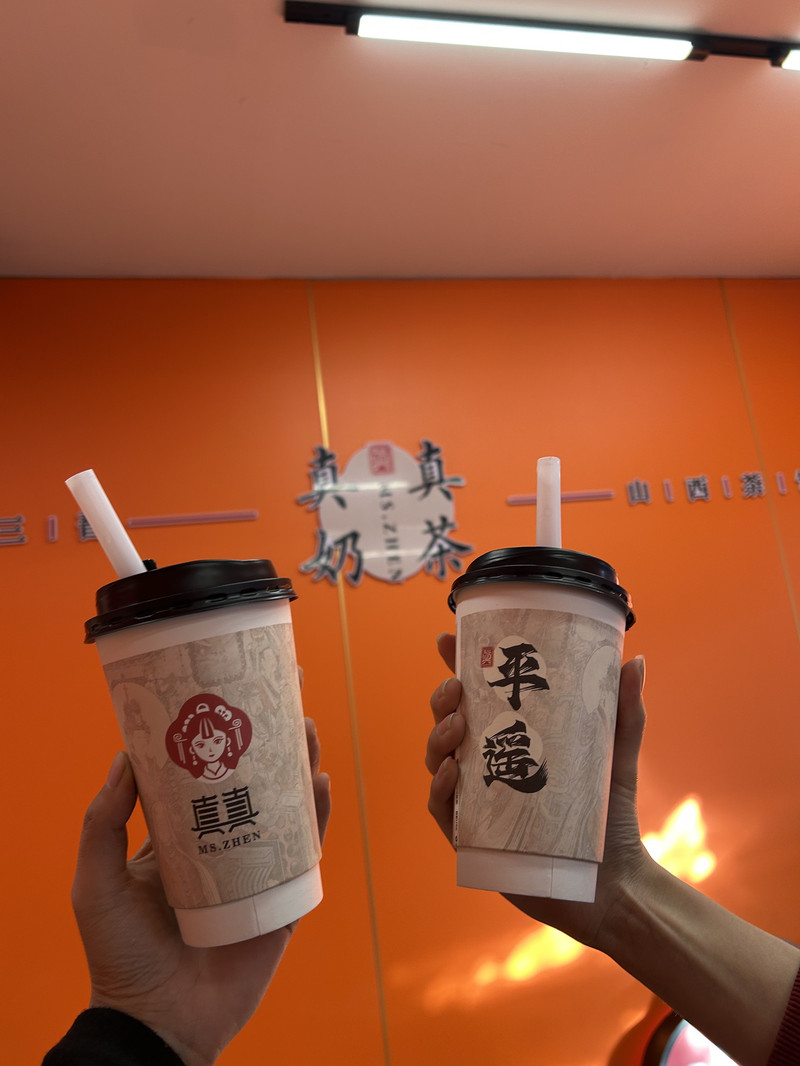 傍晚:真真奶茶(嘗“桃花紅杏花白”,國風杯身打卡)