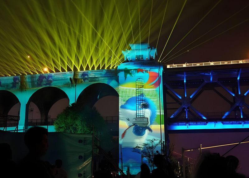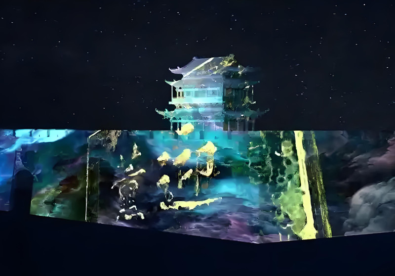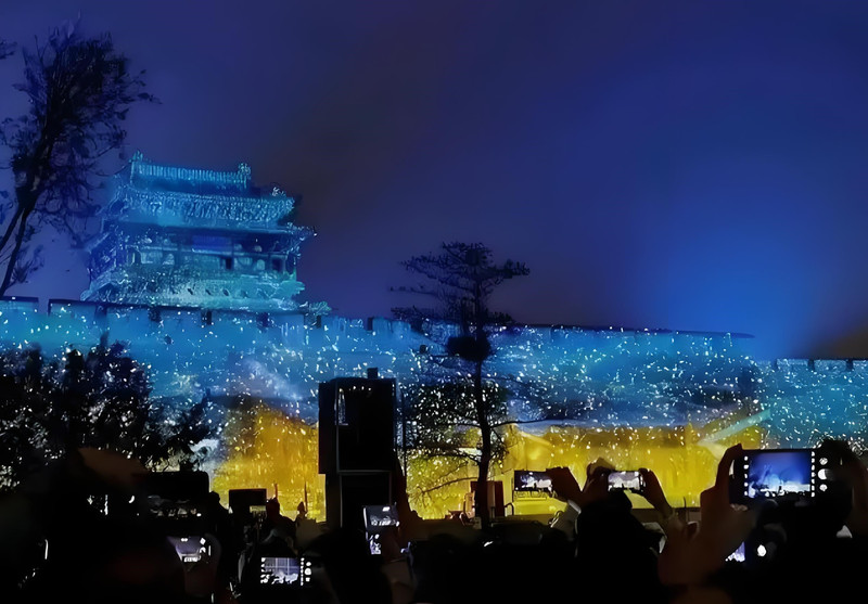 捧著奶茶登上迎薰門城牆,正好趕上燈光秀。3D投影在城牆上變換各種圖案,光影的交錯、畫面的流轉,簡直美哭了!