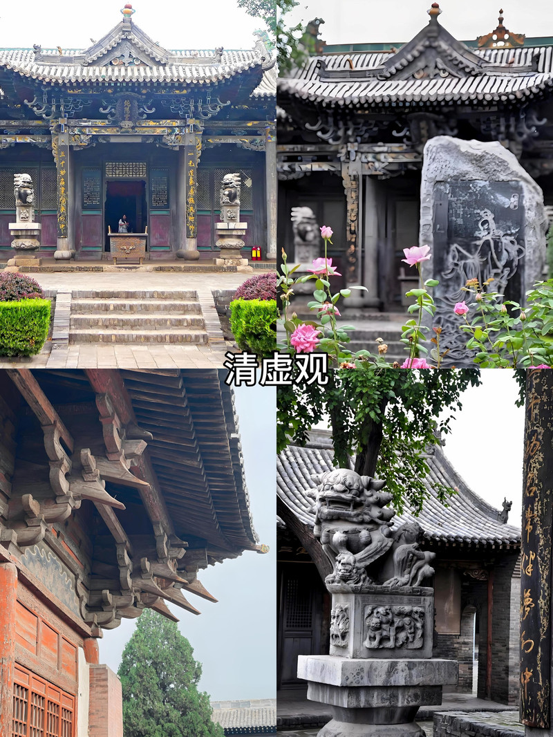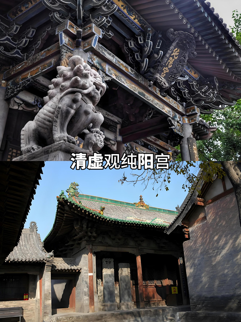 清虛觀可是“平遙十二景”之一!創建於唐顯慶二年,原名太平觀,後來改名清虛觀。觀裡的建築匯集了元、明、清三代的風格,龍虎殿、三清殿、純陽宮、玉皇閣,一座座建築佈局嚴謹,左右對稱。